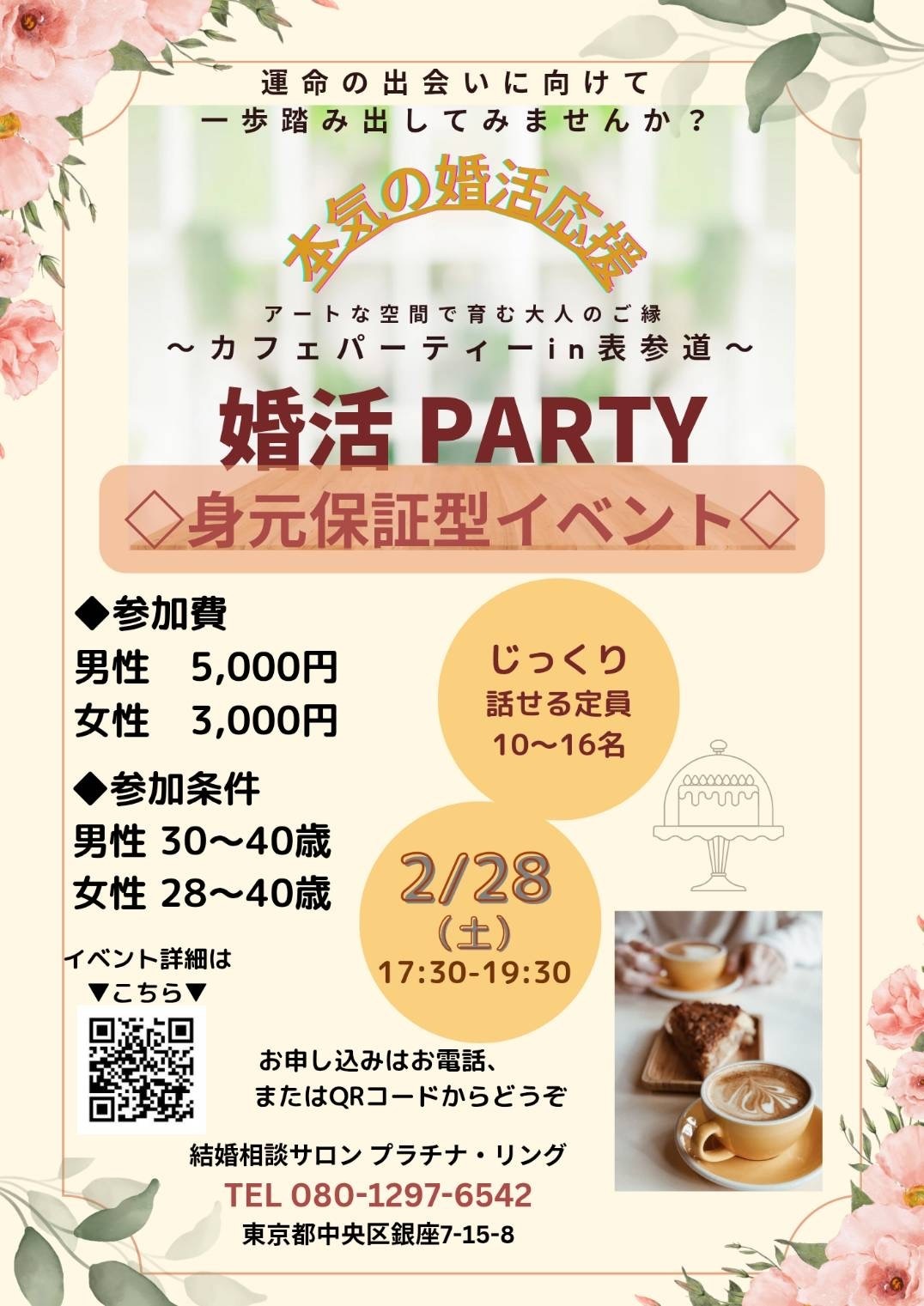 身元保証型の婚活パーティーとして皆さんに安心してご参加頂けるよう質の高い出会いになるよう工夫しております。(結婚を真剣に考えておられる男女限定のパーティーとなっておりますので、参加者の皆様にはご本人確認をさせていただいております。ですのでパーティーまでに当社にお越し頂くあるいはZoomにおいて、免許証をご掲示の上、参加費用を納めていただいて、正式受付となりますことをご了承ください) 都内の素敵な会場で、仕事が充実されてきている20〜40代中心の真剣な出会いの機会として本パーティーへぜひご参加ください。